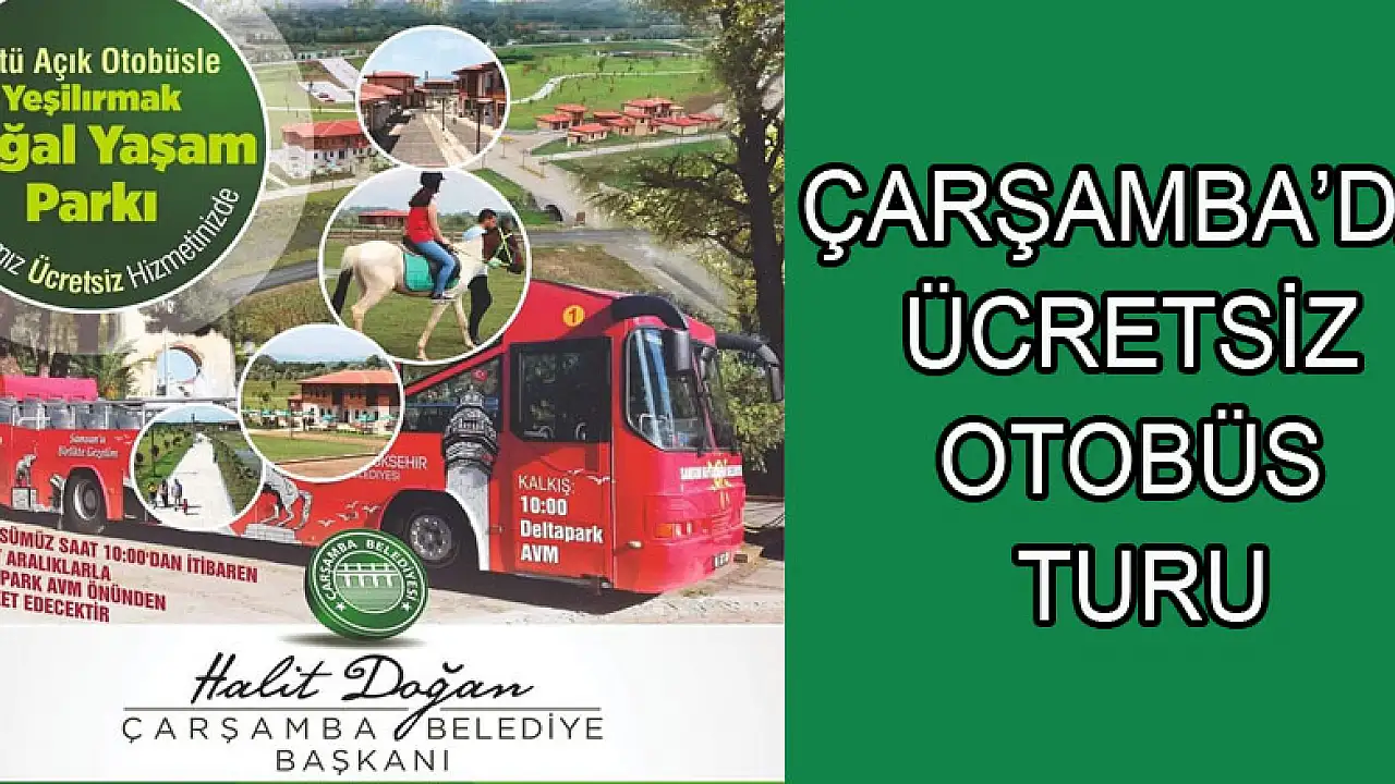 Samsun'un Çarşamba ilçesinde Belediye Başkanlığı tarafından üstü açık otobüsle Yeşilırmak Doğal Yaşam Parkı'na ücretsiz turların başladığı belirtildi.