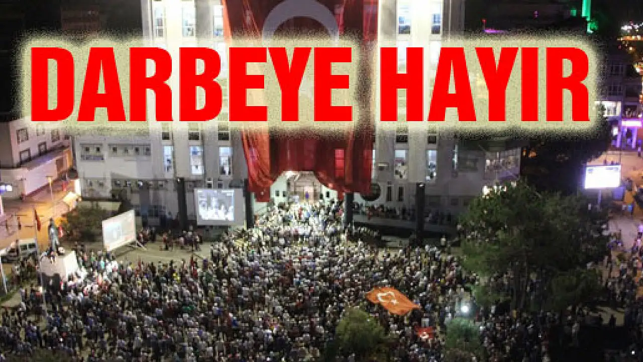 Çarşambalı vatandaşlar darbe girşiminin ardından Belediye Meydanı'nda toplandı. Vatandaşlar, tek yürek olarak 'Darbeye Hayır' dedi.