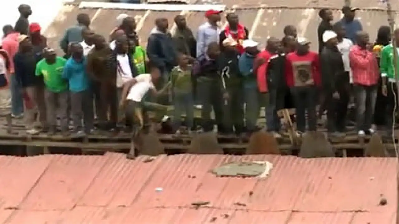 Kenya’nın başkenti Nairobi’de kaydedilen görüntülerde, yaklaşık 40 kişi, oluşan taşkını daha iyi görebilmek için bir evin çatısına bağlı platforma çıktı. Üzerindeki şahısların ağırlığını taşıyamayan tahta platform ise bir anda çöktü. Şahıslar yere düşerken, platformun yüksek olmaması olası bir faciayı önledi.
