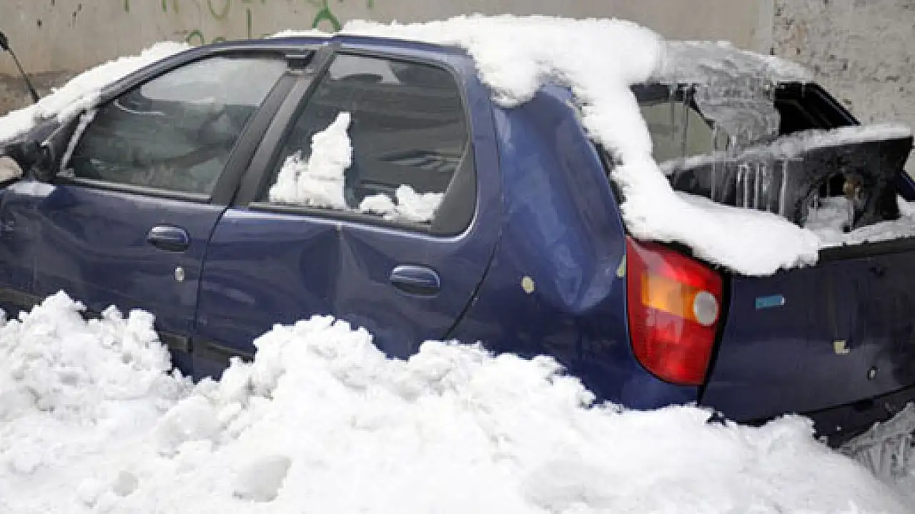 Çatıdan düşen kar kütlesi arabayı hurdaya çevirdi