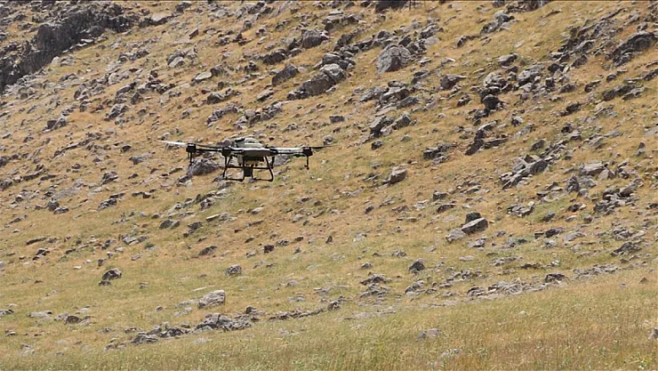 Çekirgelere karşı dronla ilaçlama yapılıyor