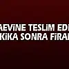 Cezaevine teslim edildi, 15 dakika sonra firar etti