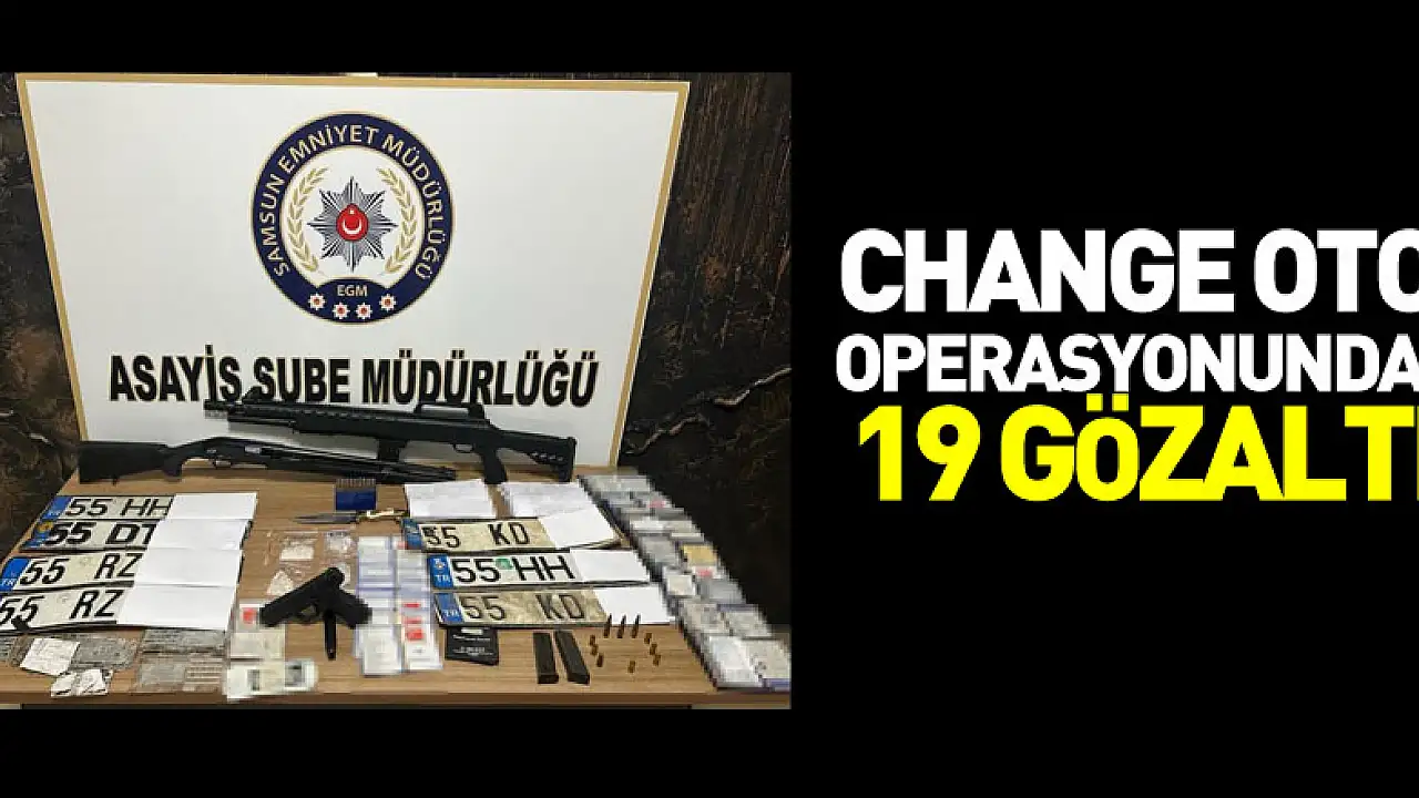 Edinilen bilgiye göre, Samsun Cumhuriyet Başsavcılığı koordinesinde İl Emniyet Müdürlüğü Asayiş Şube Müdürlüğü ekipleri, oto hırsızlığına yönelik Samsun merkezli İstanbul ve Çorum illerini kapsayan eş zamanlı operasyon düzenledi. Farklı marka ve modeldeki 10 aracın (change oto) motor ve şasi numaraları ile orijinal özelliklerini değiştirerek, 'nitelikli dolandırıcılık, resmi belgede sahtecilik ve kaçakçılık' suçlarını işledikleri tespit edilen Samsun'da 15, İstanbul ve Çorum’da 4 olmak üzere toplam 19 şahıs yakalanarak gözaltına alındı. Gözaltına alınanların ikamet ve iş yerlerinde yapılan aramalarda; 11 adet araç kupası üzerinde şasiler bulunan metal plaka, 19 adet araç satış belgesi, çok sayıda araç alım satım işlemlerine ilişkin evrak ve diğer materyaller, 1 adet numaratör, 52 adet araç ruhsatı, 7 adet araç plakası, 1 adet ruhsatsız tabanca, 16,98 gram metamfetamin, 2 adet ruhsatsız tüfek, 3 adet AK47 fişeği, 7 adet 9,19 mm. fişek, 2 adet boş şarjör ve 1 adet amaç dışı bıçak ele geçirildi.