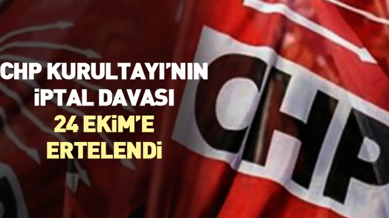 Cumhuriyet Halk Partisi'nin (CHP) 4-5 Kasım 2023'te düzenlediği 38. Olağan Kurultayı'nın iptali istemiyle açılan davanın duruşması, 24 Ekim 2025 tarihine ertelendi.