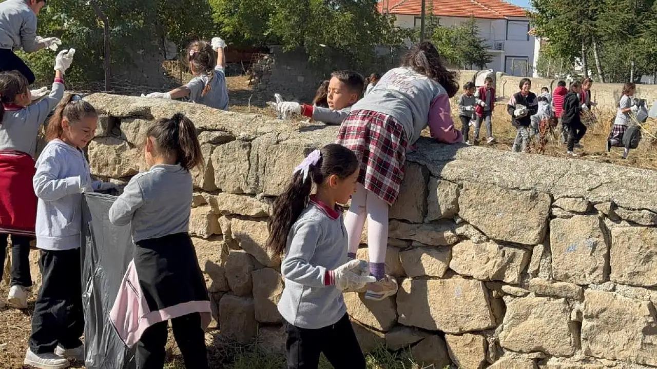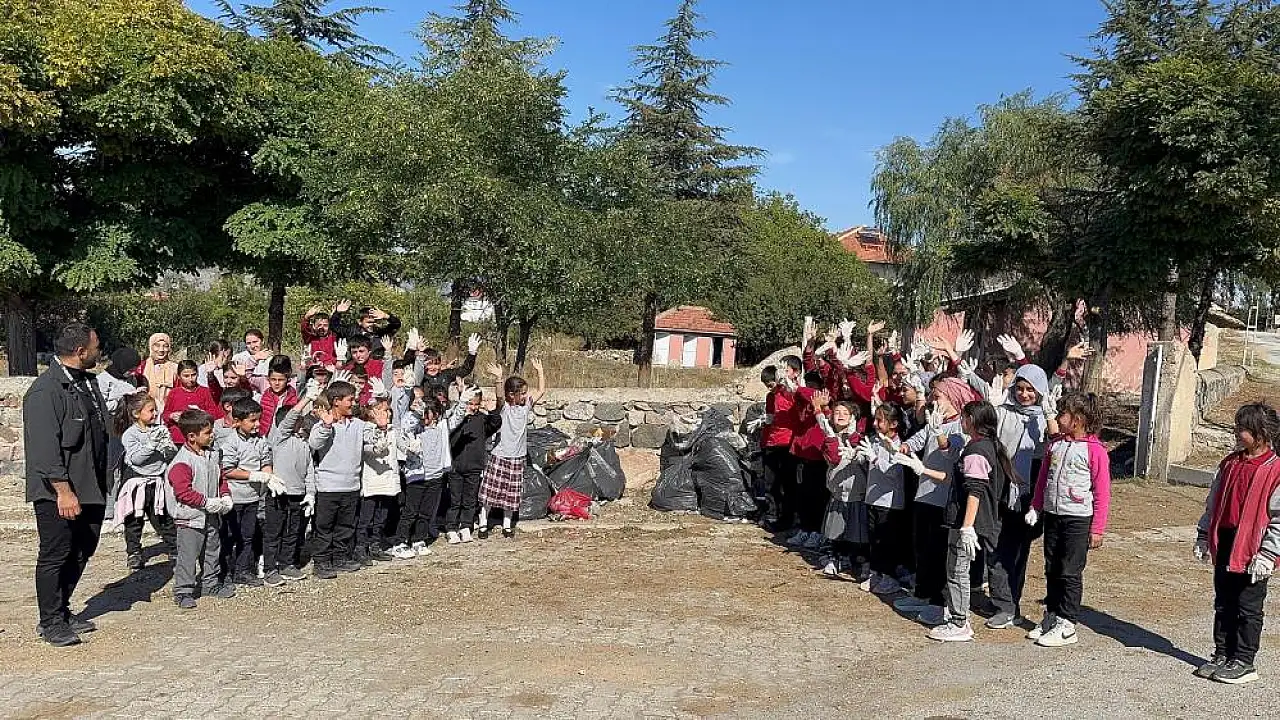 Yozgat'ta çocuklar, örnek davranışa imza atarak hem okullarındaki hem köylerindeki çöpleri topladı.