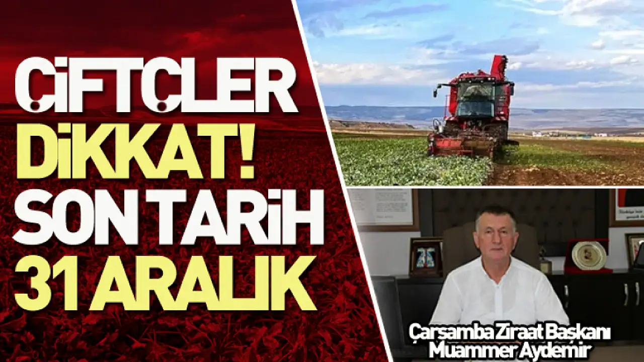 Tarımsal üretimde kayıt altına alınma ve devlet desteklerinden faydalanmanın temel şartı olan Çiftçi Kayıt Sistemi (ÇKS) başvurularında takvim daralıyor. Başvurularının 31 Aralık 2025 tarihinde sona ereceği uyarısında bulun Çarşamba Ziraat Odası başkanı Muammer Aydemr, 2026 yılı tarımsal desteklerinden yararlanmak isteyen tüm çiftçilerin başvurlarını yapması gerektiğini vurguladı.