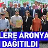 Aronya fidanı dağıtım töreni, çiftçilere fidan dağıtımının ardından toplu fotoğraf çekimi sonrası son buldu.