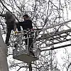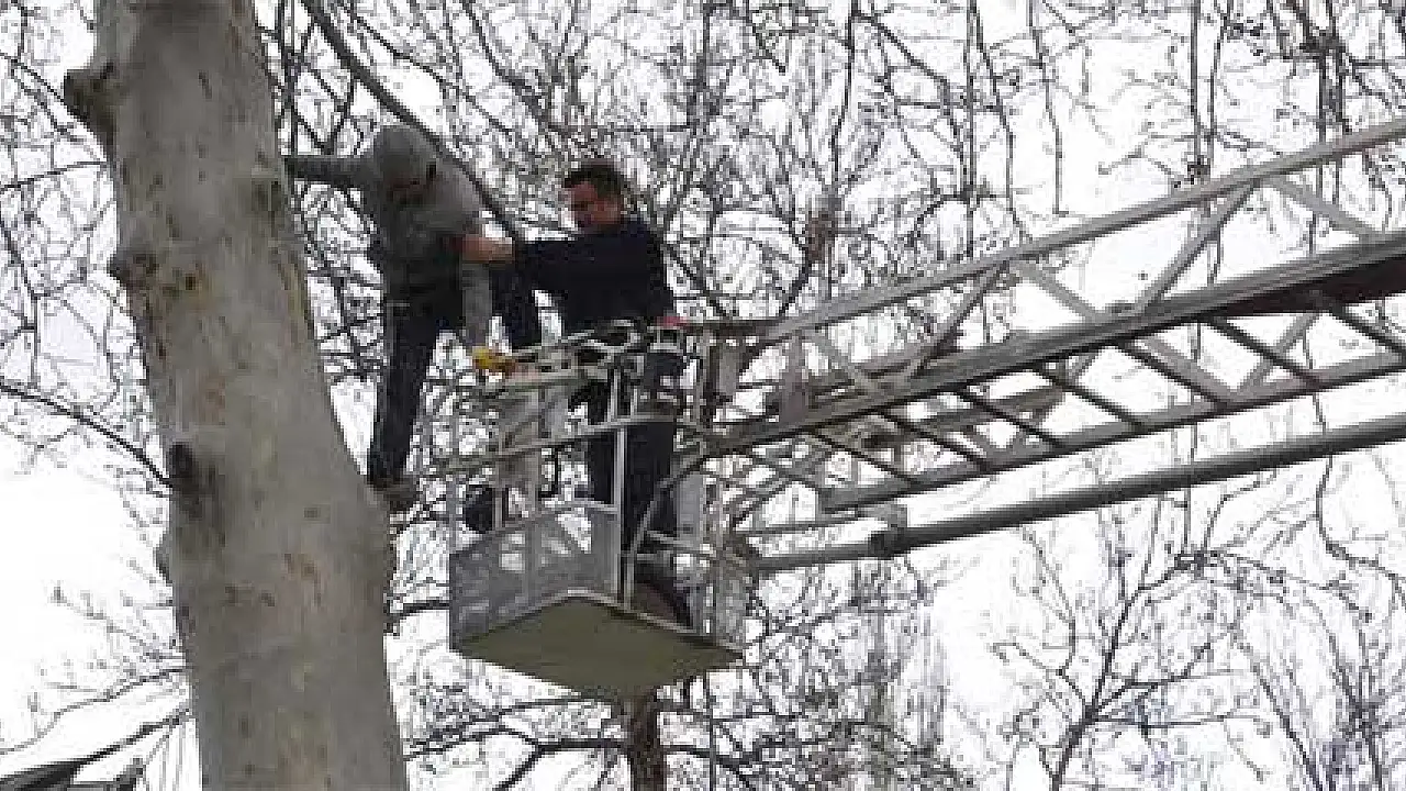 Aksaray'da branda asmak için çıktığı ağaçtan inemeyen işçinin imdadına itfaiye yetişti.