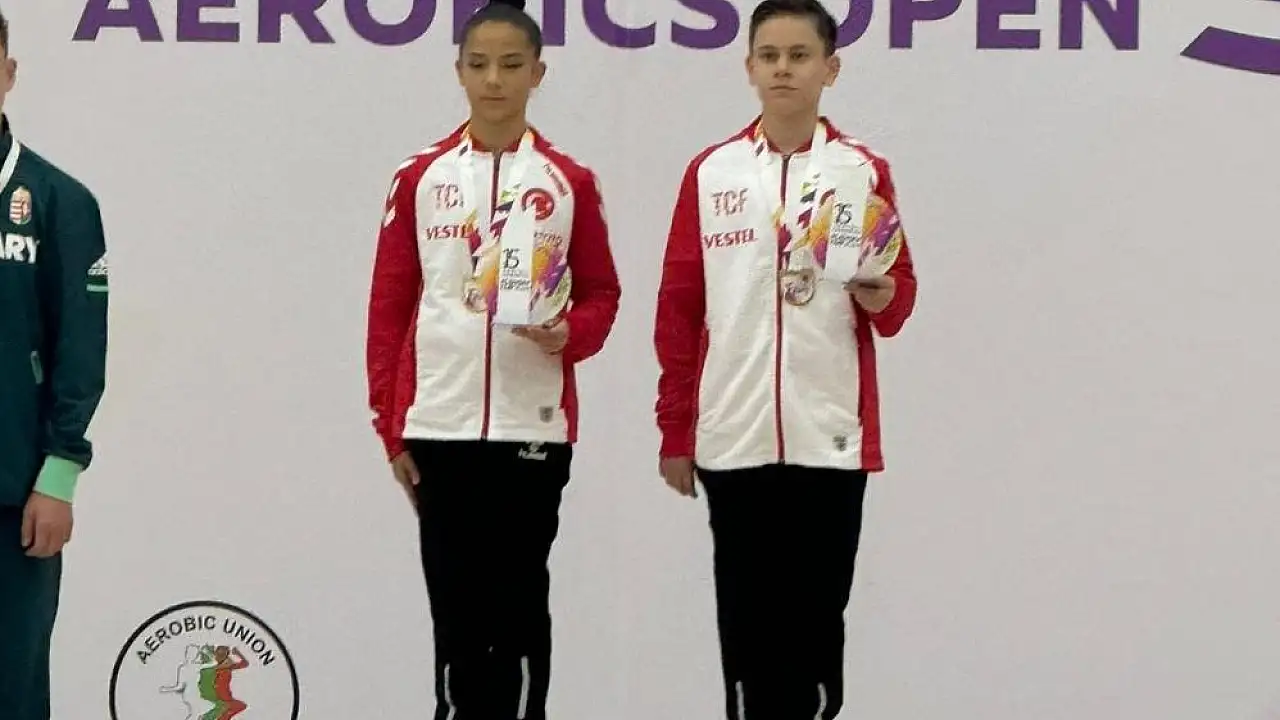 Manisalı cimnastikçiler Furkan Saylan ve Duru Günen Bulgaristan'ın Plovdiv kentinde düzenlenen Aerobik Cimnastik Uluslararası Plovdiv Cup Yarışmasında 12-14 yaş çiftler kategorisinde altın madalya kazandı.