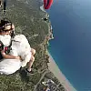 Gökyüzünde yamaç paraşütüyle spiral dönüşler de yapan çift, bol bol adrenalin depoladı.