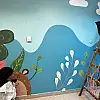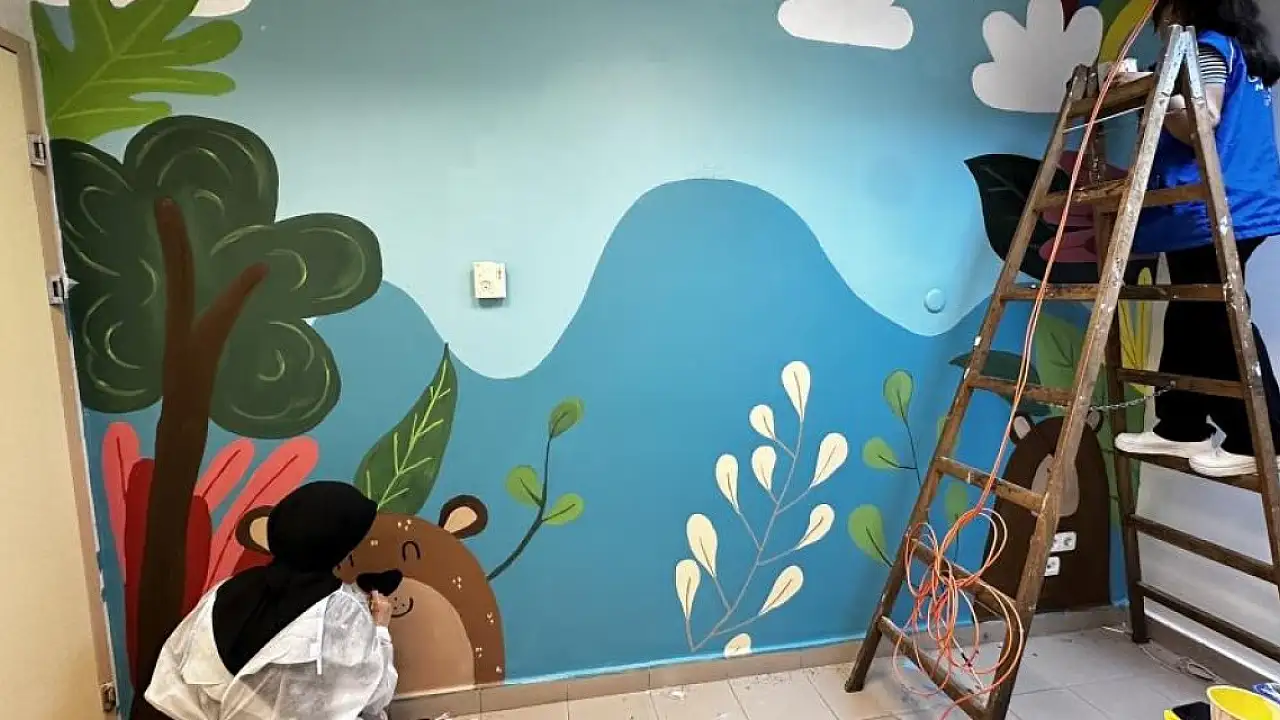 Düzce'de gençler Muncurlu'da yapımı devam eden Kadın Doğum ve Çocuk Hastanesinin duvarlarına çizgi film karakterleri ile çizerek boyadı.