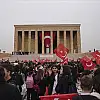 Aslanlı Yol'dan yürüyerek Gazi Mustafa Kemal Atatürk'ün mozolesine gelen heyet, TBMM Başkanı Kurtulmuş'un mozoleye çelenk bırakmasının ardından saygı duruşunda bulundu ve İstiklal Marşı'nı okudu.