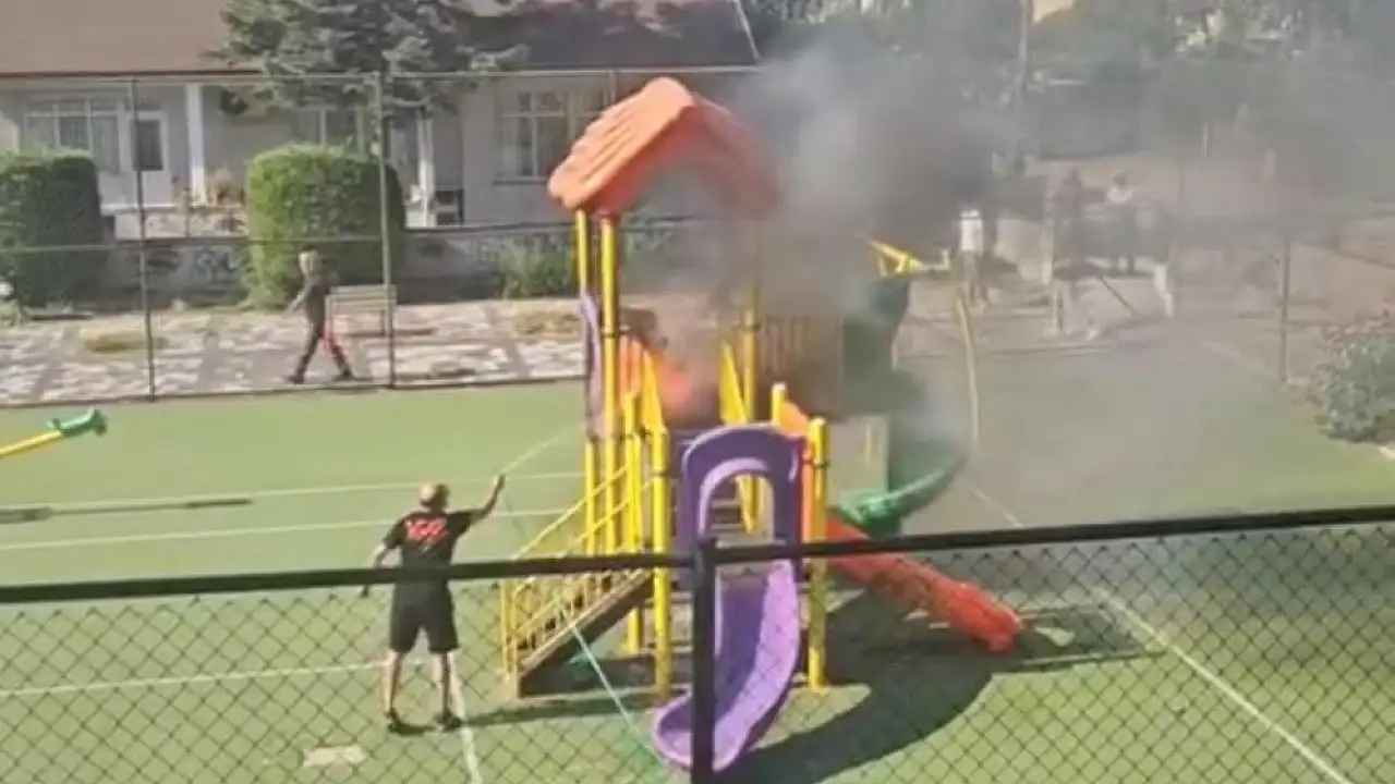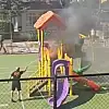 Düzce'de çocuk parkında bulunan kaydırakta bilinmeyen bir nedenle yangın çıktı. Alevler, çevredeki vatandaşlar ve itfaiye ekipleri tarafından söndürüldü.
