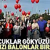 Çocuklar gökyüzüne kırmızı balonlar bıraktı