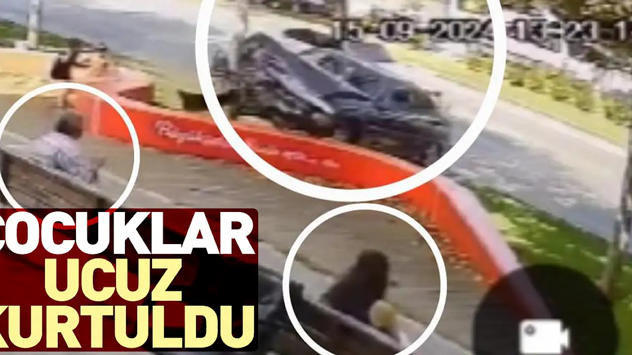Samsun'da yoldan çıkan otomobil yol kenarındaki ağaçlara ve banka çarparken, güvenlik kamerası tarafından saniye saniye görüntülenen kazada oyun oynayan çocuklar ve bankta oturanlar ölümden döndü. Kazada otomobilde bulunun 2 kişi yaralanarak hastanelik oldu.