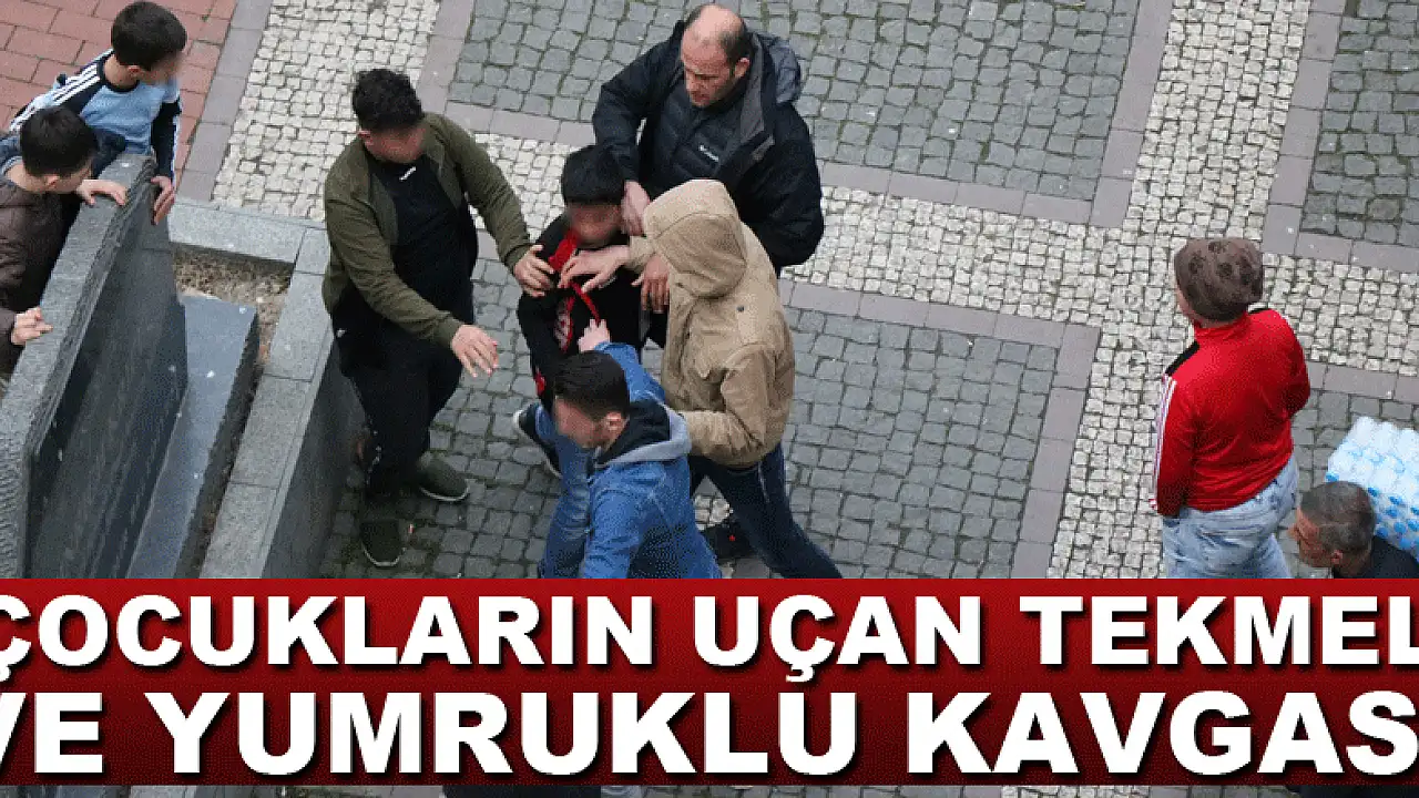 Çocukların uçan tekmeli ve yumruklu kavgası