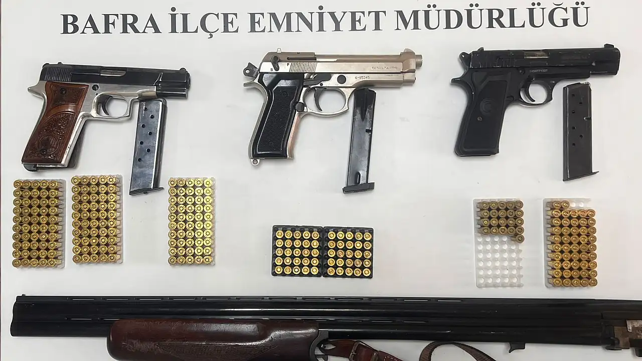 Edinilen bilgiye göre; Samsun İl Emniyet Müdürlüğü’ne bağlı Bafra İlçe Emniyet Müdürlüğü Narkotik Suçlarla Mücadele Büro Amirliği ekipleri, ilçede gerçekleştirdikleri çalışmalar kapsamında çok sayıda ruhsatsız silah ve mühimmat ele geçirdi.