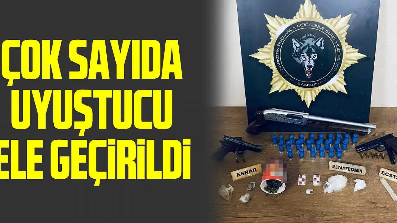 Edinilen bilgiye göre, Samsun Cumhuriyet Başsavcılığı koordinesinde uyuşturucu ile mücadele kapsamında çalışma yapan Samsun Emniyet Müdürlüğü Narkotik Suçlarla Mücadele Şube Müdürlüğü ekipleri, ilçe emniyet müdürlükleri ve asayiş şubenin de desteğiyle narkotik uygulaması düzenledi. Yapılan uygulamada 154 gram esrar, 112 gram metamfetamin, 148 adet sentetik ecza, 3 adet ecstasy, 2 adet ruhsatsız tabanca, 29 adet tabanca fişeği, 1 adet kurusıkı tabanca ,72 adet ruhsatsız tabanca fişeği, 1 adet ruhsatsız tüfek, 24 adet kartuş ve 7 adet uyuşturucu madde kullanma aparatı ele geçirildi. Uyuşturucu madde kullanmak suçundan 7 yıl 1 ay ve 2 yıl 6 ay kesinleşmiş hapis cezası olan ve basit yaralama suçundan aranması bulunan 2 hükümlü ile toplam 4 aranan şahıs yakalandı.