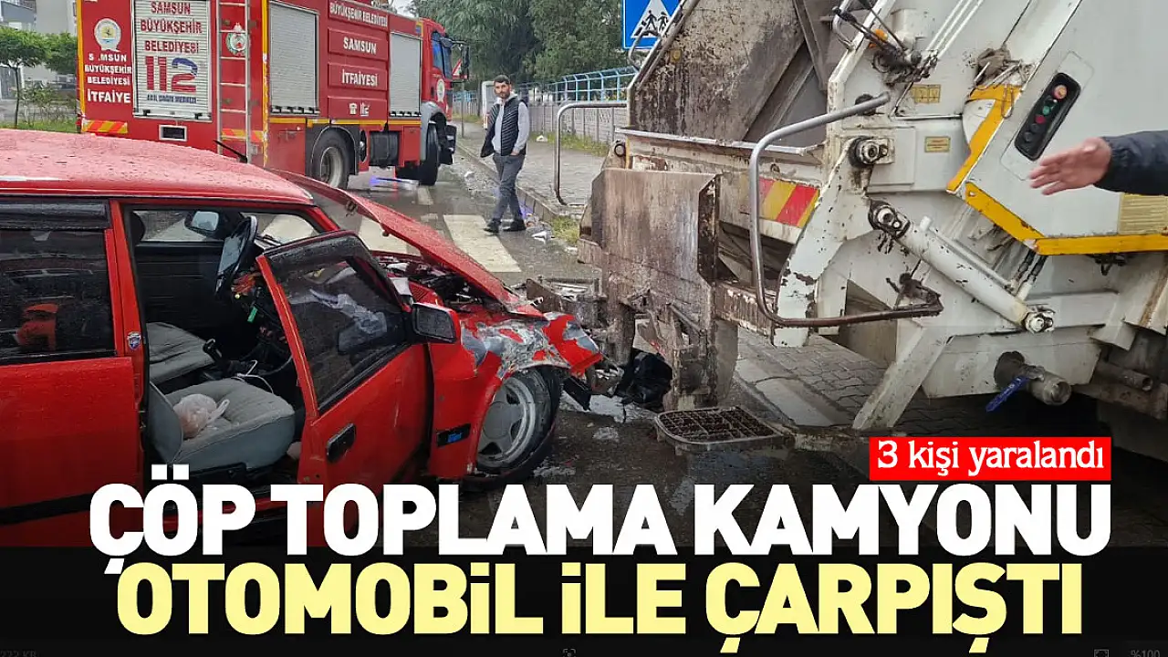 Samsun'un Salıpazarı ilçesinde çöp toplama kamyonu ile çarpışan otomobildeki 3 kişi yaralandı.