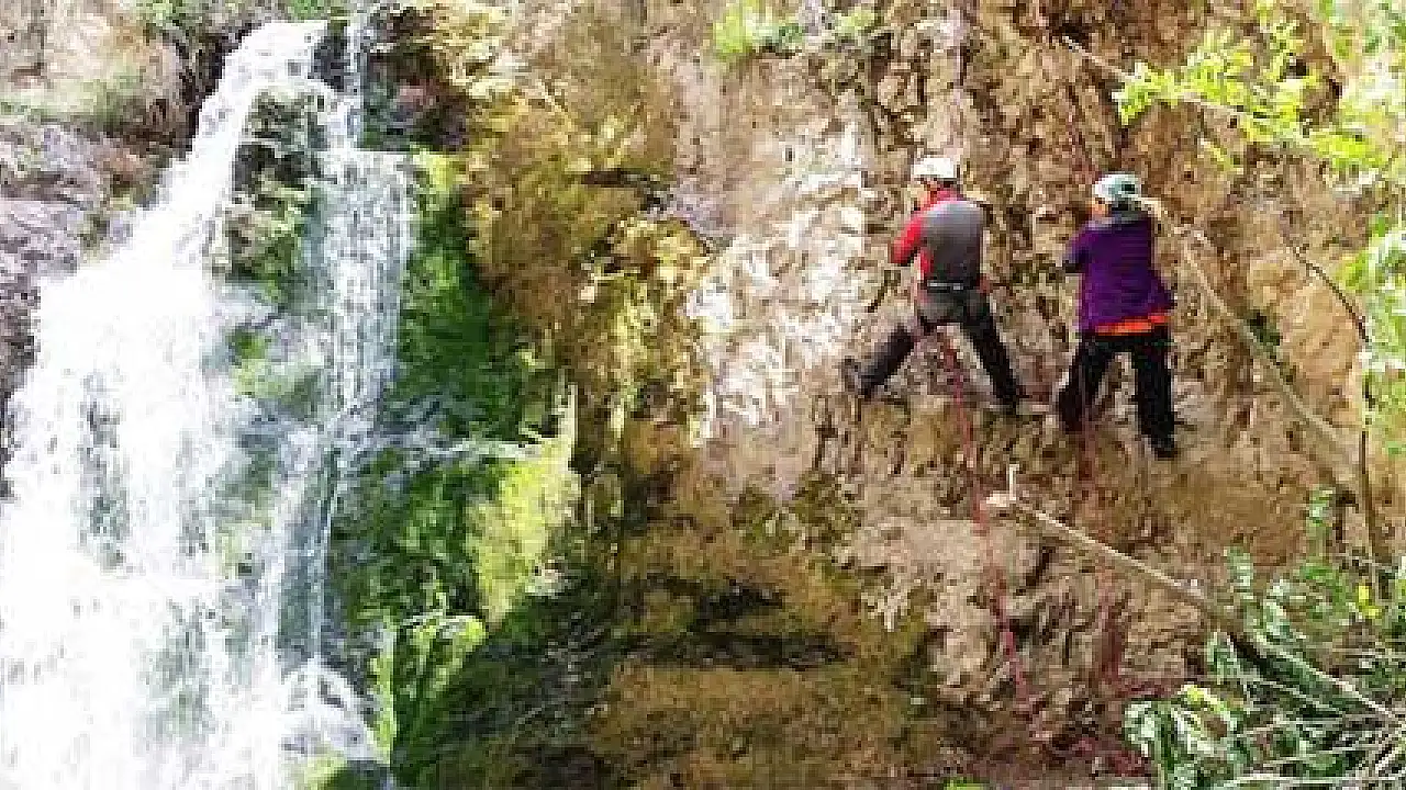 Hakkari Reşko Doğa Sporları Kültür Derneği üyesi dağcılar, ilk defa Avaure Şelalesinde kaya tırmanışı gerçekleştirdi.