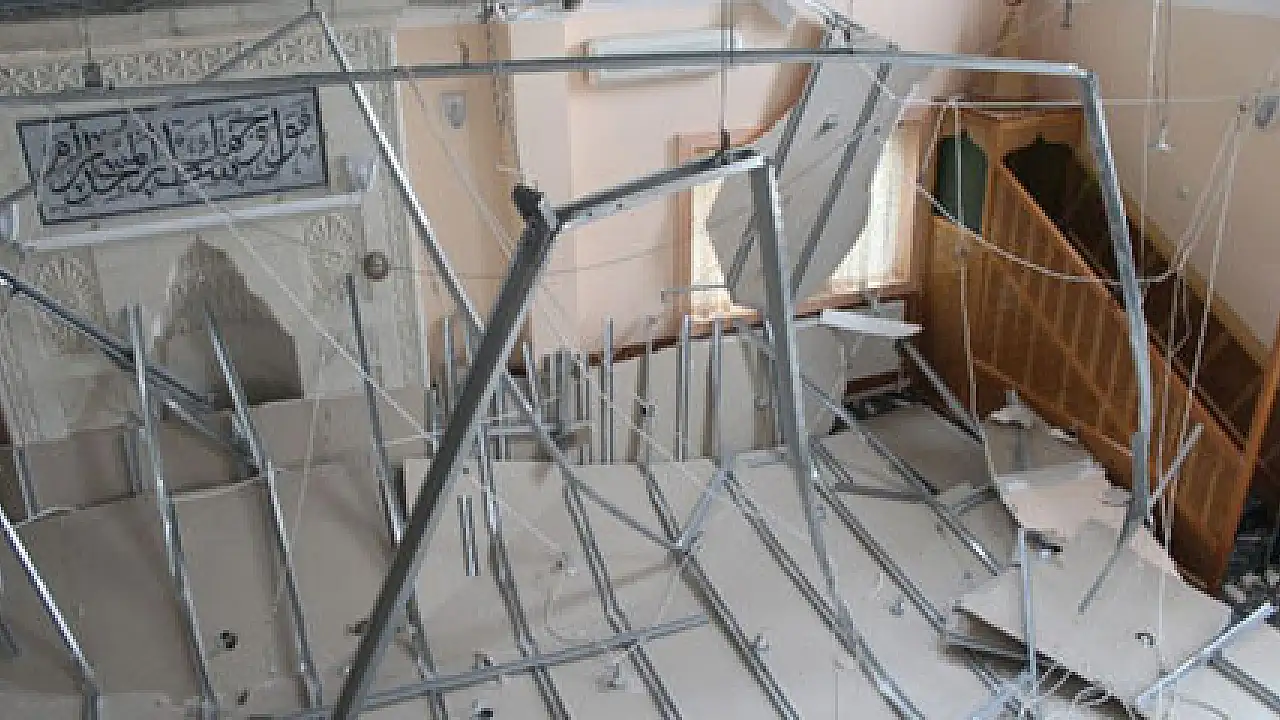 Cuma namazı sırasında caminin tavanı çöktü