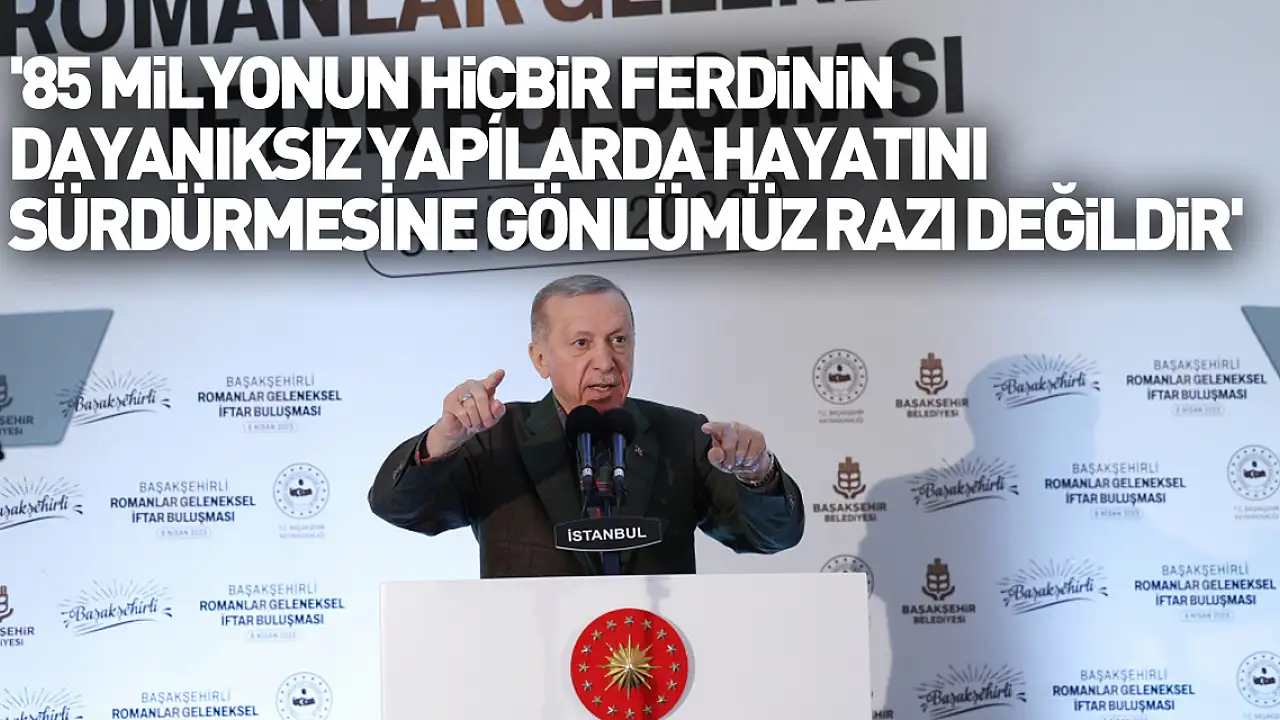 - Cumhurbaşkanı Erdoğan: '85 milyonun hiçbir ferdinin dayanıksız yapılarda hayatını sürdürmesine gönlümüz razı değildir'