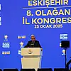 Cumhurbaşkanı Erdoğan, konuşmasında Eskişehir'le ilgili olarak, "Eskişehir'i fetret devrinden kurtarıp eser ve hizmet belediyeciliğinin örnek şehri haline getirene kadar durmadan, dinlenmeden çalışacağız. Kongremizin bu hedefe giden yolda yeni bir kilometre taşı olacağına inanıyorum. AK Parti Eskişehir İl Kongresi'nin şehrimiz için, Eskişehirli kardeşlerimle birlikte ülkemiz, milletimiz için hayırlara vesile olmasını diliyorum. Eskişehir teşkilatımızda görev alan tüm kardeşlerime emekleri, gayretleri ve fedakarlıkları için şükranlarımı sunuyorum. Kuruluşundan bugüne kadar AK Parti Eskişehir teşkilatlarımızdan vazife üstlenmiş tüm kardeşlerime en kalbi şükranlarımı sunuyorum" ifadelerini kullandı.