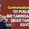 Cumhurbaşkanı Recep Tayyip Erdoğan, 'Oy pusulasının bir yanında huzur olacak, kalkınma olacak, terör örgütleriyle ve destekçileriyle kararlı mücadele olacak. Pusulanın diğer tarafında ise kavga olacak, kriz olacak, yatırım ve hizmet düşmanlığı olacak.' de