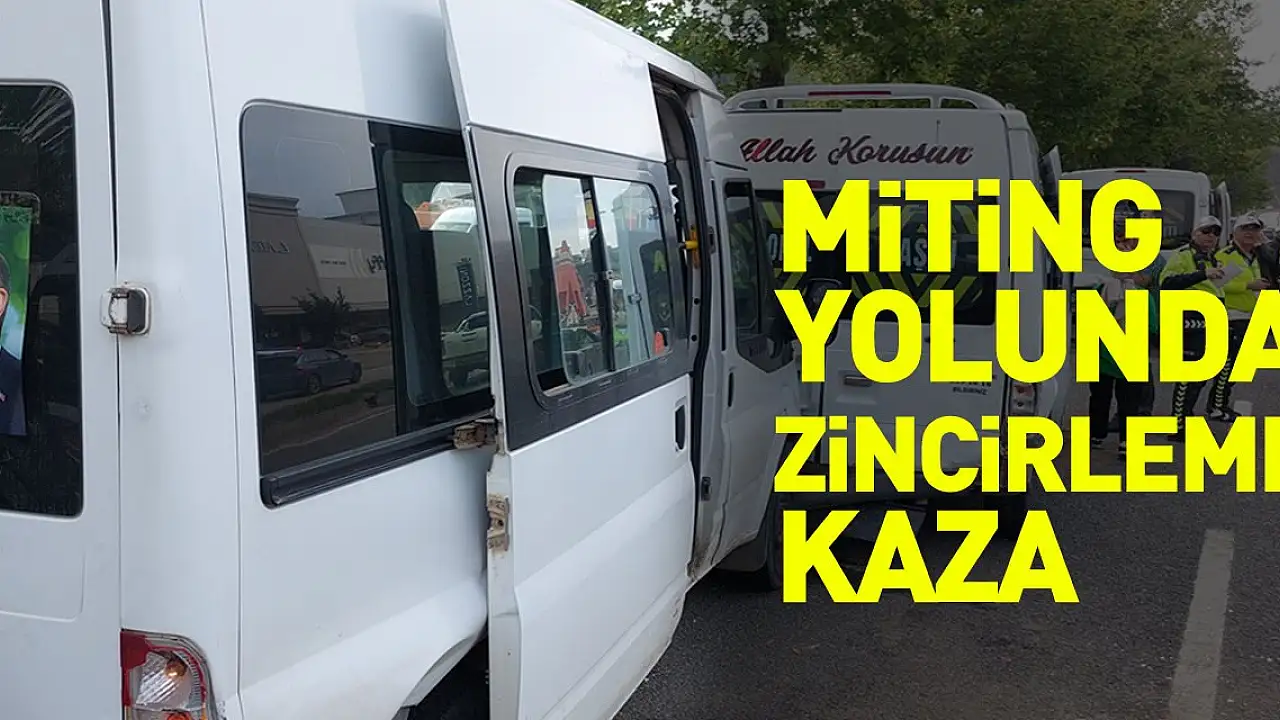 Cumhurbaşkanı Recep Tayyip Erdoğan'ın mitingine giden 5 minibüsün karıştığı zincirleme trafik kazasında 4 kişi yaralandı