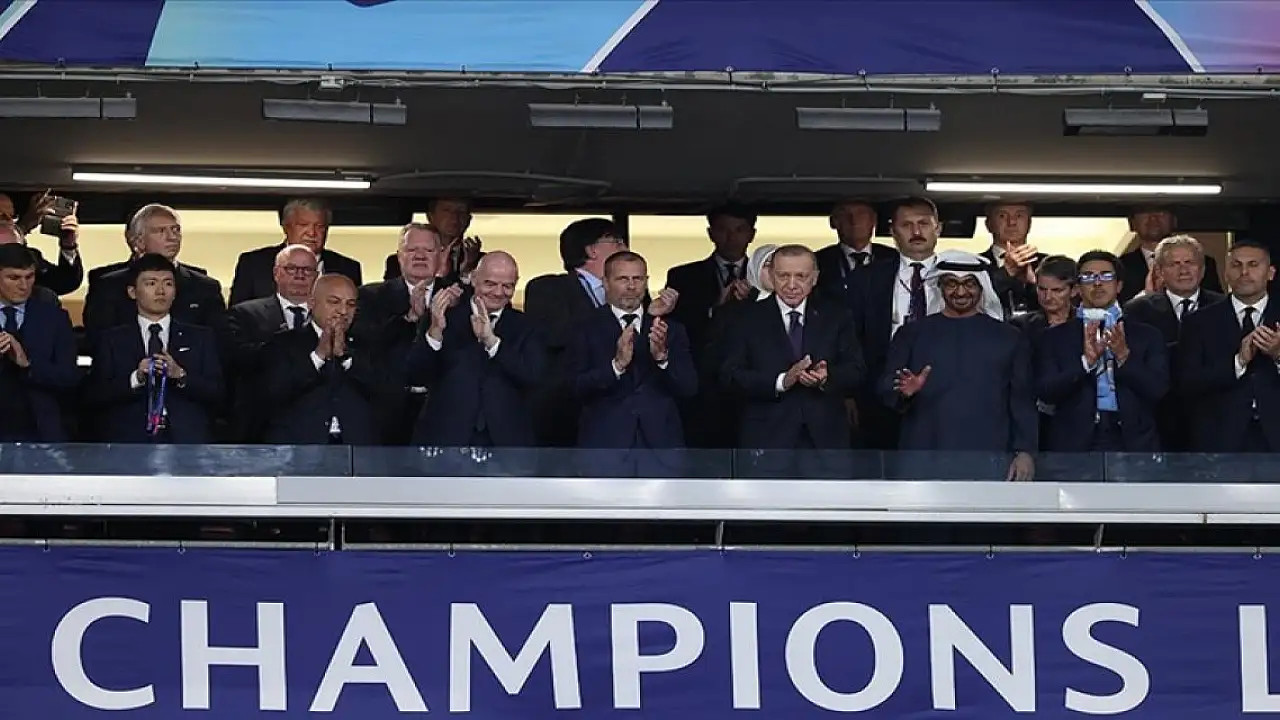 UEFA Şampiyonlar Ligi finalini Cumhurbaşkanı Recep Tayyip Erdoğan, Birleşik Arap Emirlikleri Devlet Başkanı Şeyh Muhammed bin Zayed El Nahyan, TFF Başkanı Mehmet Büyükekşi, FIFA Başkanı Gianni Infantino ve UEFA Başkanı Aleksander Ceferin, birlikte izliyor.