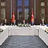Cumhurbaşkanlığı Külliyesi'ndeki görüşmede, Adalet Bakanı Yılmaz Tunç, Çalışma ve Sosyal Güvenlik Bakanı Vedat Işıkhan, Sanayi ve Teknoloji Bakanı Mehmet Fatih Kacır, Ticaret Bakanı Ömer Bolat, Cumhurbaşkanlığı Strateji ve Bütçe Başkanı İbrahim Şenel ve bazı bakan yardımcıları da yer aldı.