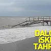 Alaçam ilçesinde olumsuz hava koşulları nedeniyle oluşan dalgalar Geyikkoşan sahilindeki iskeleyi tahrip etti.