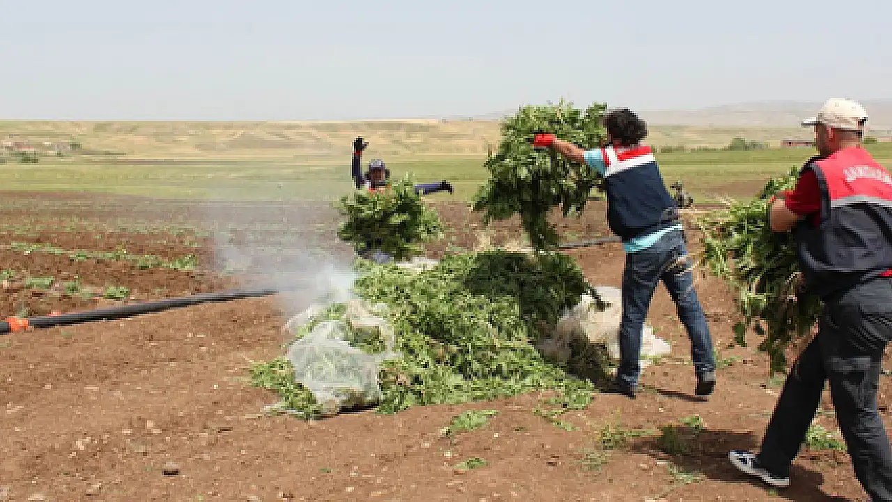 Diyarbakır'da düzenlenen operasyonda, 'Bu kadarına da pes' dedirtecek görüntüler ortaya çıktı. Damlama sulama yönteminin kullanıldığı dört dönümlük arazide 24 bin kök hint keneviri ele geçirildi.