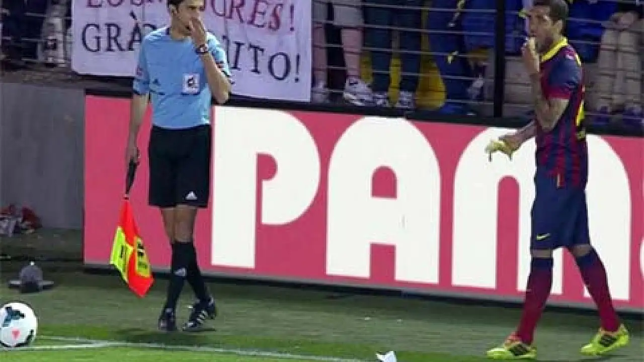 La Liga'da 35. hafta maçında Villarreal ile deplasmanda karşılaşan Barcelona'nın futbolcusu Dani Alves'e Villarreal taraftarı tarafından yapılan ırkçı saldırıya Alves müthiş bir karşılık verdi.