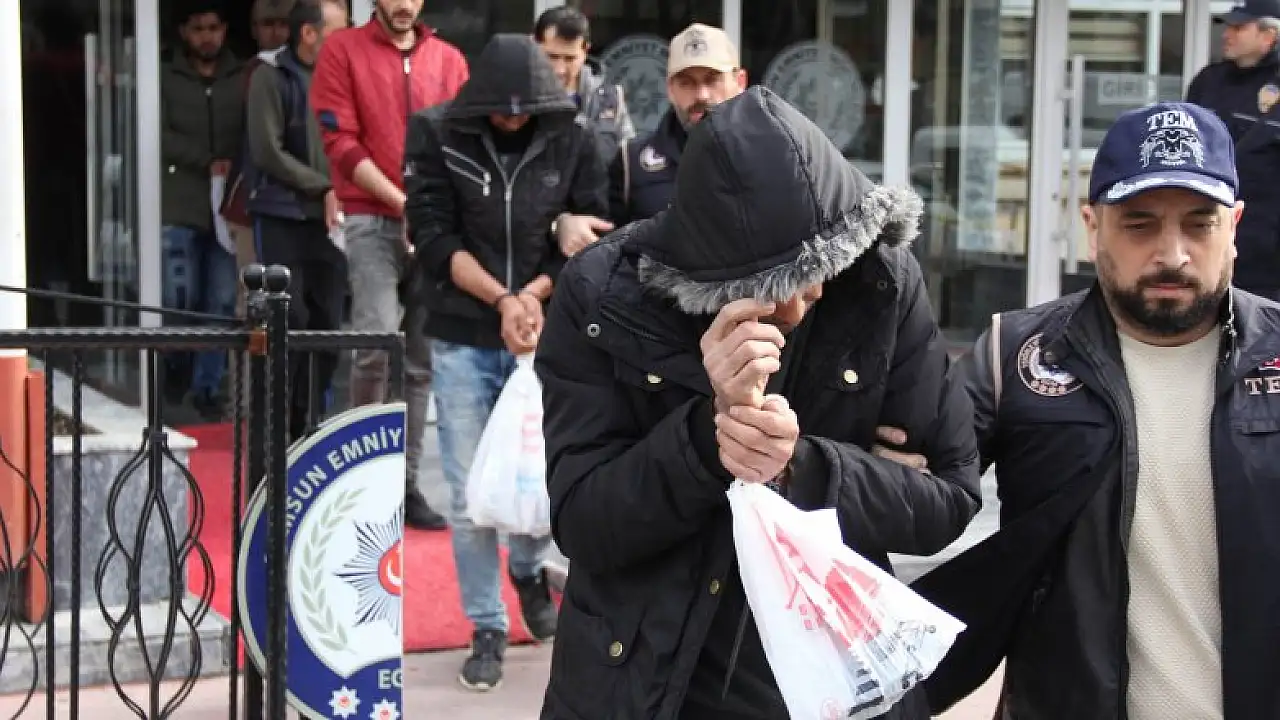 Samsun'da terör örgütü DEAŞ'e yönelik düzenlenen operasyonda gözaltına alınan 10 Iraklı, polisteki işlemlerin ardından Samsun Adliyesine sevk edildi