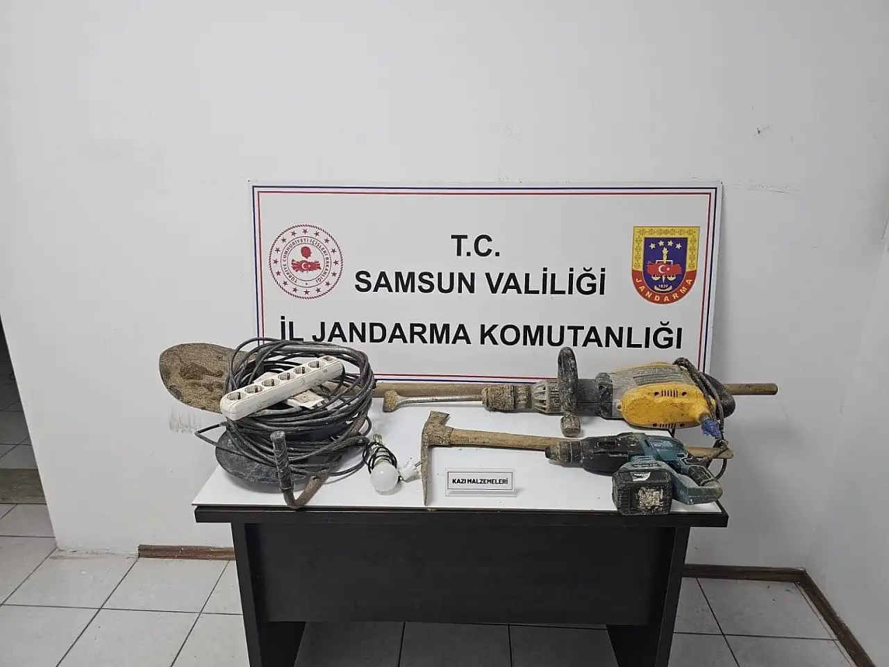 Samsun'da jandarma ekipleri define avcılarını suçüstü yakaladı.