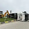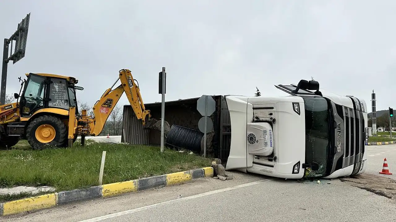 Kastamonu'da kavşakta devrilen demir yüklü tırın sürücüsü yaralandı.