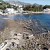 Muğla'nın Bodrum ilçesinde, Tavşan Adası'na uzanan tarihi sur kalıntıları denizin çekilmesiyle ortaya çıktı.