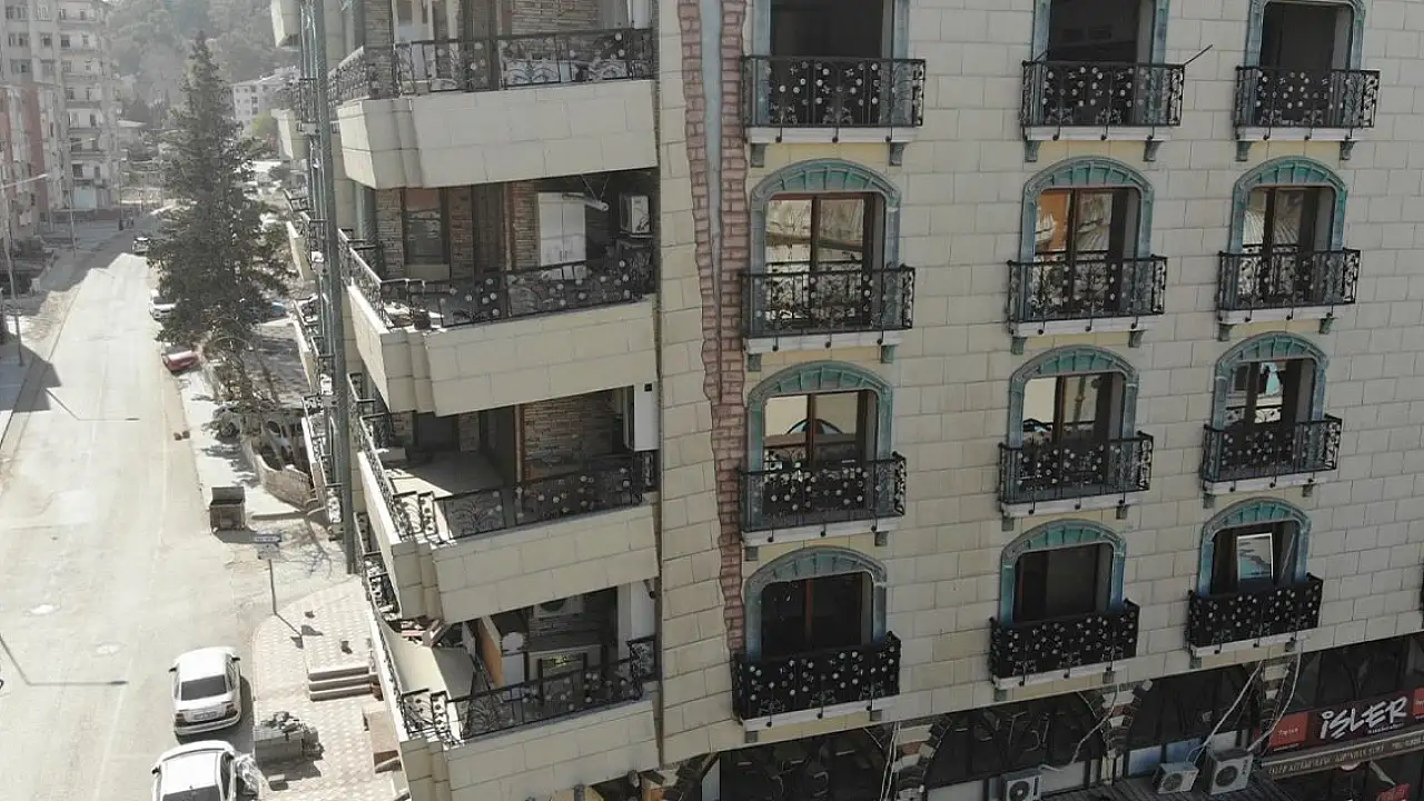 Kahramanmaraş merkezli depremlerde en büyük hasar Hatay’da meydana geldi. Asrın felaketinde binlerce bina hasar aldı ve yıkılmayı bekliyor. Kırıkhan ilçesinde bulunan ve mimarı yapısıyla dikkat çeken 6 katlı Kırıkhan Apartmanı ise görünümüyle yan yatmış gibi duruyor. Deprem sonrası yapılan kontrollerde az hasarlı olduğu tespit edilen yamuk binanın önünden geçen vatandaşlar, binanın depremle yan yattığını düşünüyor. Vatandaşlar, araçlarını apartman önüne park etmezken binanın önünden de geçmemeye özen gösteriyor.