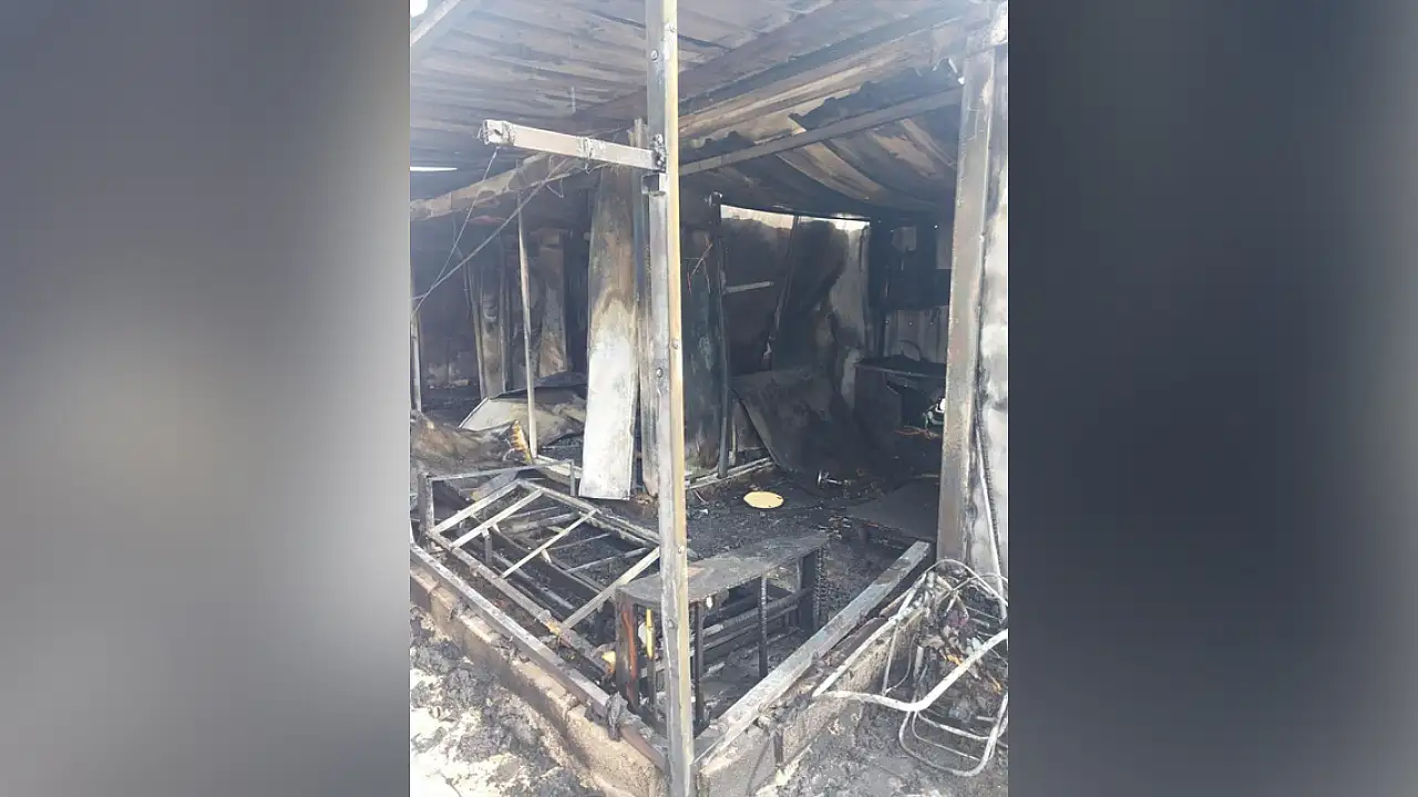 Hatay'ın Kırıkhan ilçesinde depremzede ailenin yaşadığı konteyner yanarak kullanılmaz hale geldi