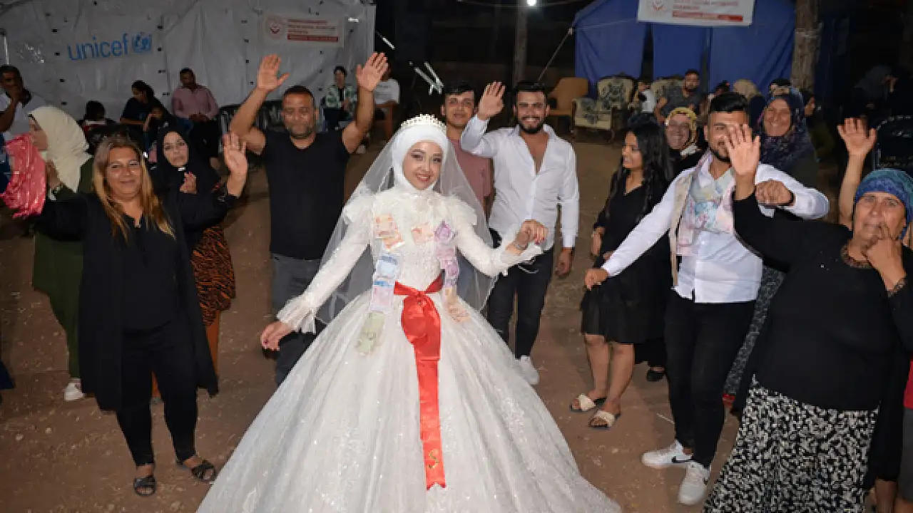 Depremin vurduğu Hatay'ın Kırıkhan ilçesinde yaşayan Emrah Kozkıran ve Sabah Ekhel, aşklarının başladığı çadır kentte düzenlenen düğün ile hayatlarını birleştirdi. Genç çiftin yuvalarıysa, 7 kişilik Kozkıran ailesinin çadırı oldu.