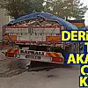 Deri yüklü tırdan akan kan çevreyi kirletti