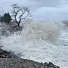 Dev dalgalar sahil yoluna zarar verdi
