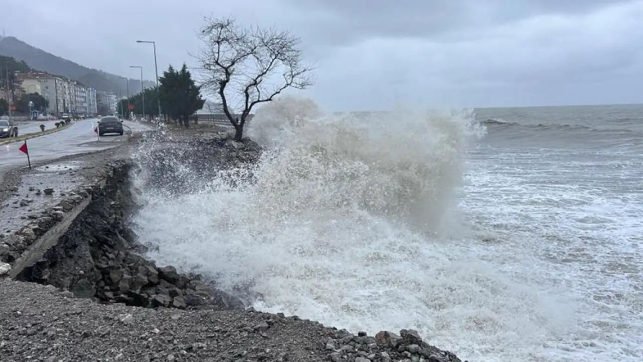 Kastamonu'da sahili döven dev dalgalar sebebiyle sahil yolu zarar gördü.