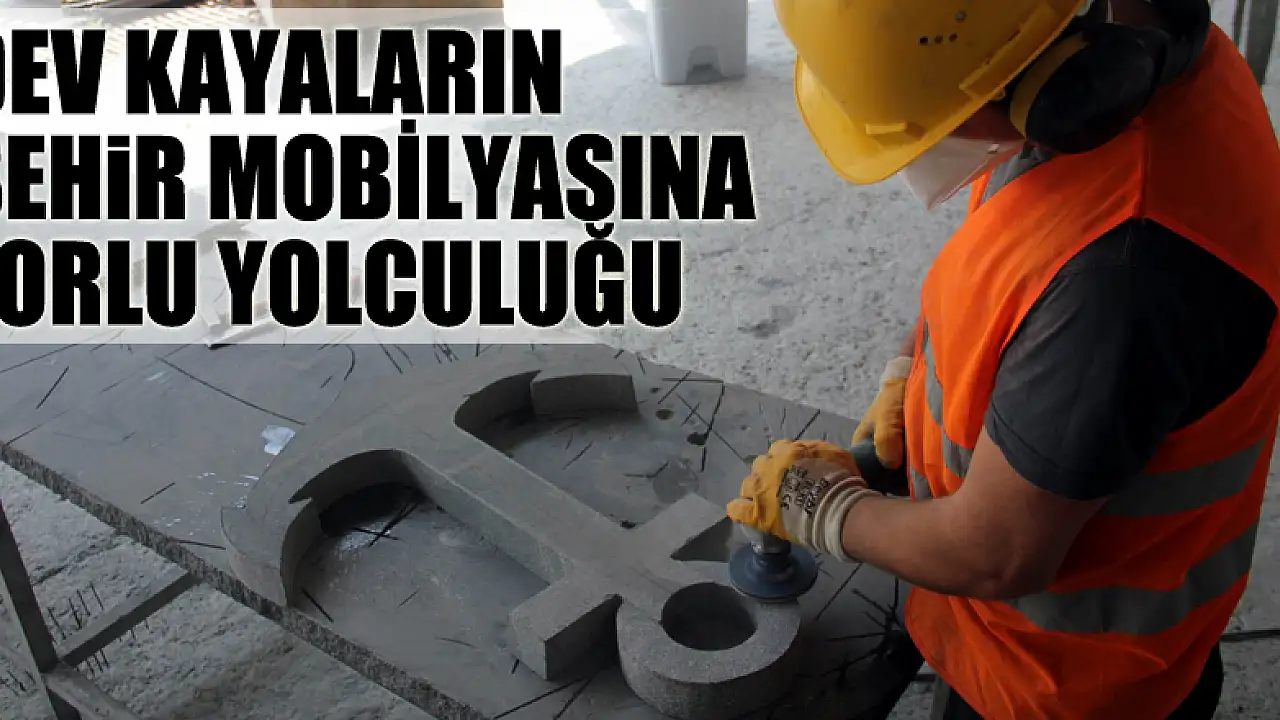 Dev kayaların şehir mobilyasına zorlu yolculuğu