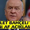 Bir gazetecinin 'af' ile ilgili sorusuna Bahçeli, ''"Teröristler, çocuk istismarcıları, tecavüzcüler, kadın katilleri hariç olmak üzere kader kurbanlarına af çıkarılmasıyla ilgili kararlılığımız sürüyor. Bildiğiniz üzere, af çıkarılmasıyla ilgili vaat ve sözümüzü seçim beyannamemize de aldık. Bu duruşumuzdan geri adımımız düşünülemez. Doğrudur, Sayın Başbakan ile af konusunu değerlendirdik. Parti olarak görüşümüzü paylaştık. Kendisi de bize düşüncelerini aktardı; ama bizim aftan vazgeçtiğimize yönelik hiçbir ima, yorum veya açıklamamız olmadı. Partimizin TBMM’deki milletvekili sayısı belli. Bu şartlar altında tek başımıza bir af çıkarmamız mümkün değildi. Sayın Başbakan'a bu tespit ve somut durumu ilettim. Adalet ve Kalkınma Partisi’nin almış olduğu tavır ve tutumunu da kendi takdirleri olarak değerlendirdim. Sözlerim özet olarak buydu. Af konusu sosyal ve toplumsal bir ihtiyaçtır. Bu ihtiyaca bigane kalmak makul ve mantıklı değildir. Bayram öncesi kader mahkumlarını ve ailelerini sevindirecek girişimlerde bulunmak, toplumsal rahatlamayı temin edecek, huzur ve umudu canlandıracaktır. Hükümet, 'Gündemimizde yok' diyor. Affı gündeme almak zor değil, bunun için sadece müşfik ve şefkatli bir teşebbüs yetecektir. Af çıkarılmalıdır, Türkiye önemli ve birikmiş bir sorununu bertaraf etmelidir." dedi.