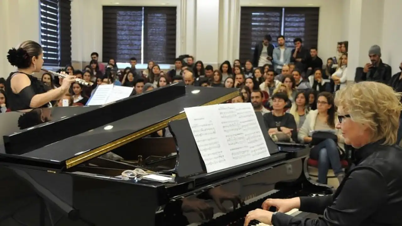 Devlet Konservatuvarı Konser Salonundaki sunum ve dinleti, piyanoda Prof. Dr. Olga Hasanoğlu ve flütte Doç. Dr. Seyhan Bulut ikilisi tarafından gerçekleştirildi. Sahnedeki uyumlarıyla dikkat çeken Hasanoğlu ve Bulut ikilisi aynı zamanda yetenekleriyle göz doldururken dinleyicilere keyifli dakikalar yaşattı. Öğrenci ve öğretim üyelerinin katıldığı dinletide, birbirinden ünlü eserlere yer verildi.