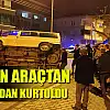 DEVRİLEN ARAÇTA YARA ALMADAN KURTULDU