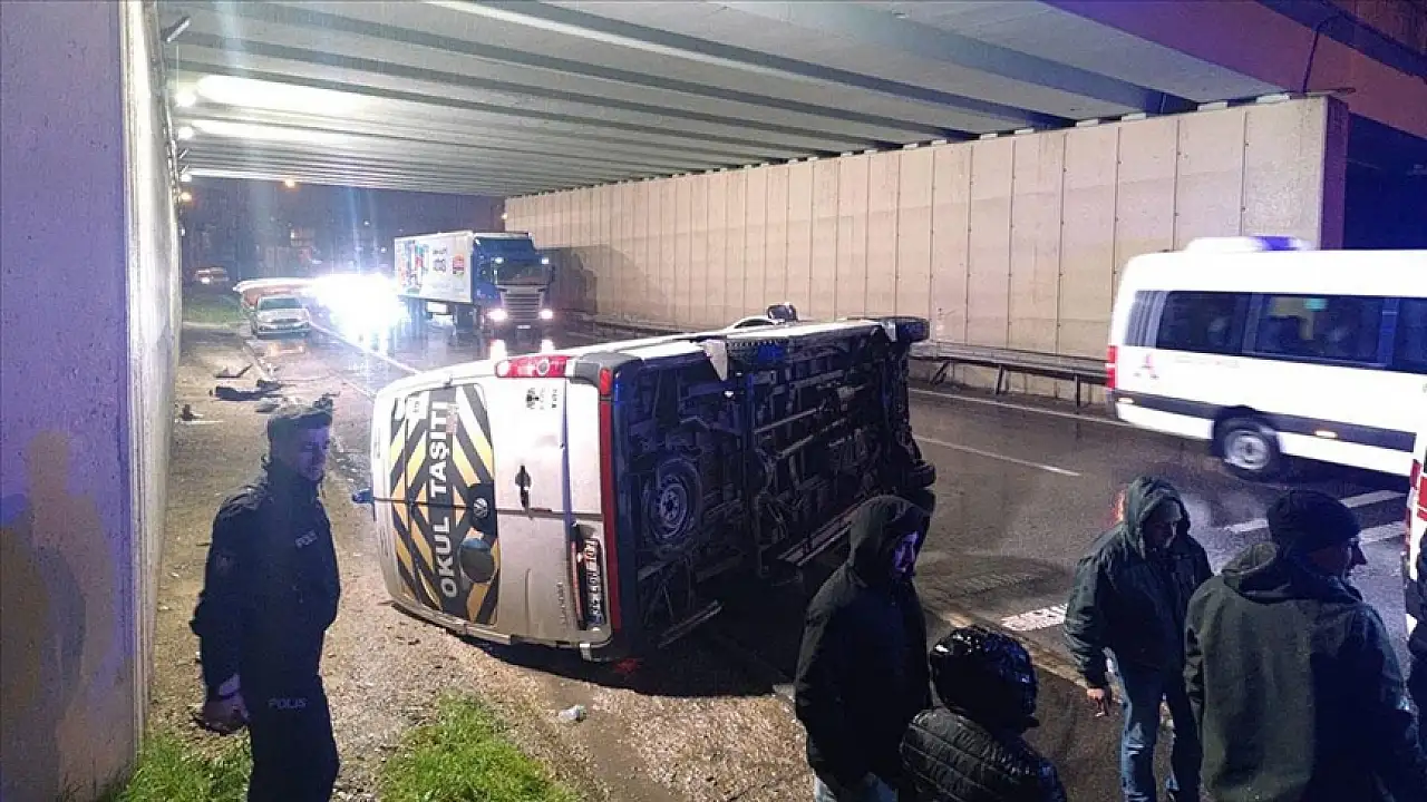 Devrilen servis minibüsündeki 7 kişi yaralandı