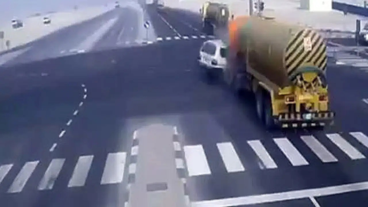 Kameraya yansıyan o anlarda yeşil ışığın yanmasıyla araçların kavşakta hızla ilerlediği görülüyor. Tankerlerin çok süratli ilerlediği kavşakta bir otomobil kırmızı ışıkta geçmeye çalışınca olanlar oluyor. Otomobile çarptıktan sonra üzerine devrilen tanker alev almaya başlıyor. Kazada iki sürücü de sıkıştığı yerde yanarak can veriyor.